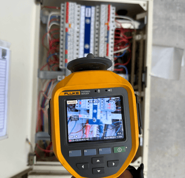Our registered electricians , Electrical Inspectors and certified thermographers carry out the inspection using industry-leading FLIR thermal imaging cameras, known for their high resolution and precision calibration. Depending on the site, this may involve safely removing covers from switchboards or guards from mechanical equipment to allow full visibility of critical components.